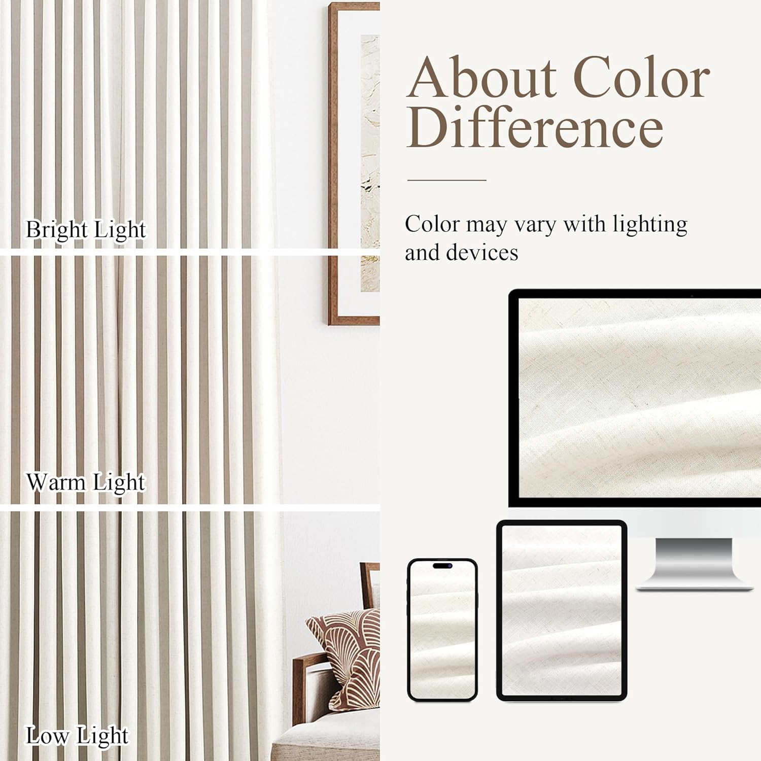 100% Blackout Pinch Pleated Curtains Linen 90 Inches Long for Bedroom 2 Panels Set Full Black Out Thermal Insulated Curtain Natural Boho Farmhouse Pinch Pleat Double Layer Room Darkening Drapes Cream