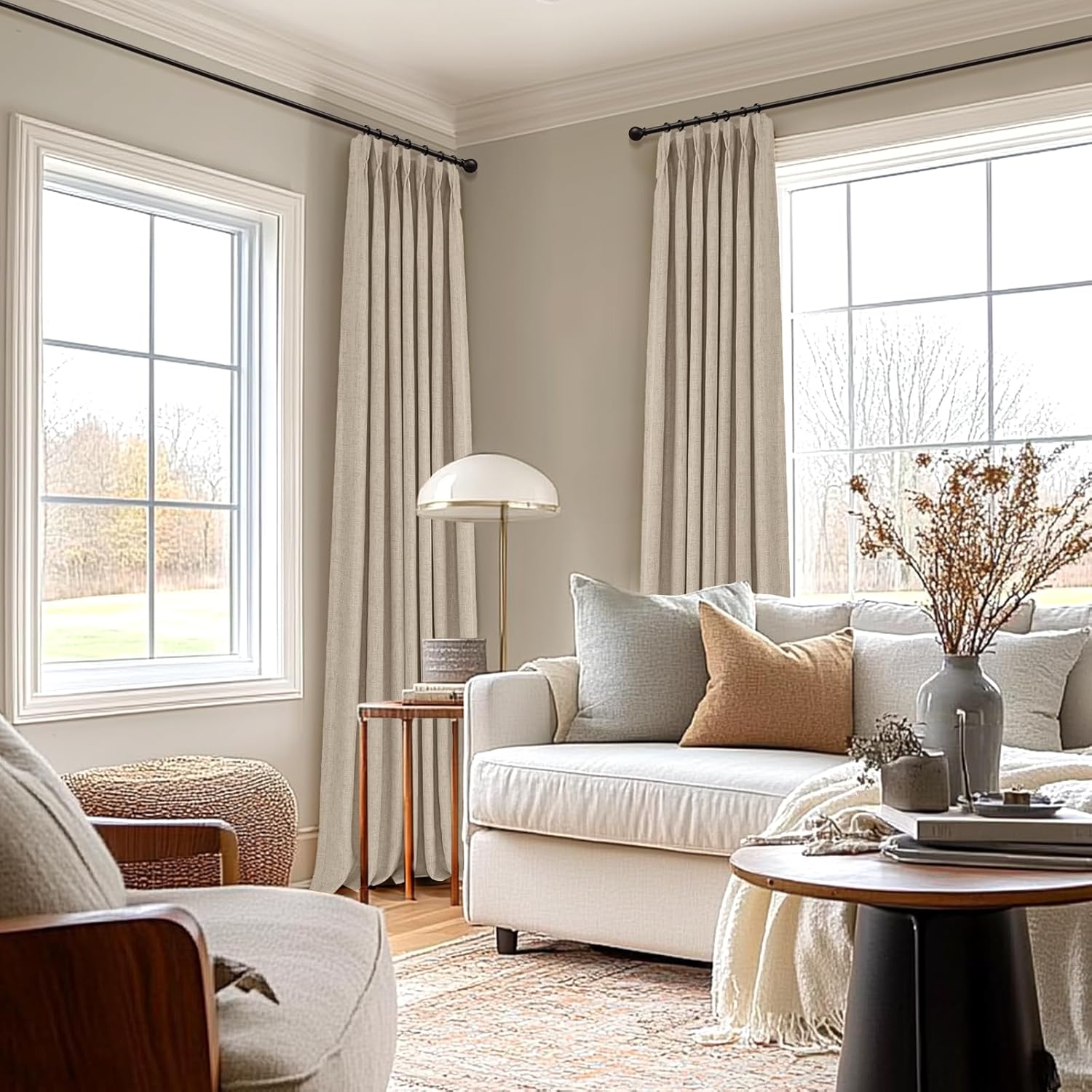 100% Blackout Shield Linen Look Textured Pinch Pleated Curtains Blackout Drapes 102 Inch Long 2 Panels Set, Faux Linen Blackout Curtains for Bedroom & Living Room, 40" W x 102" L, Oatmeal