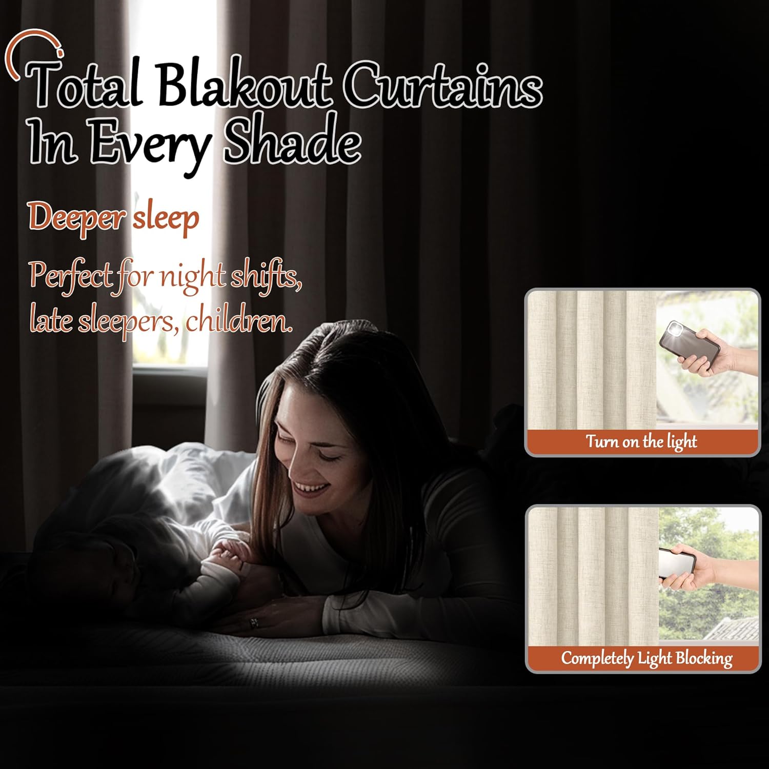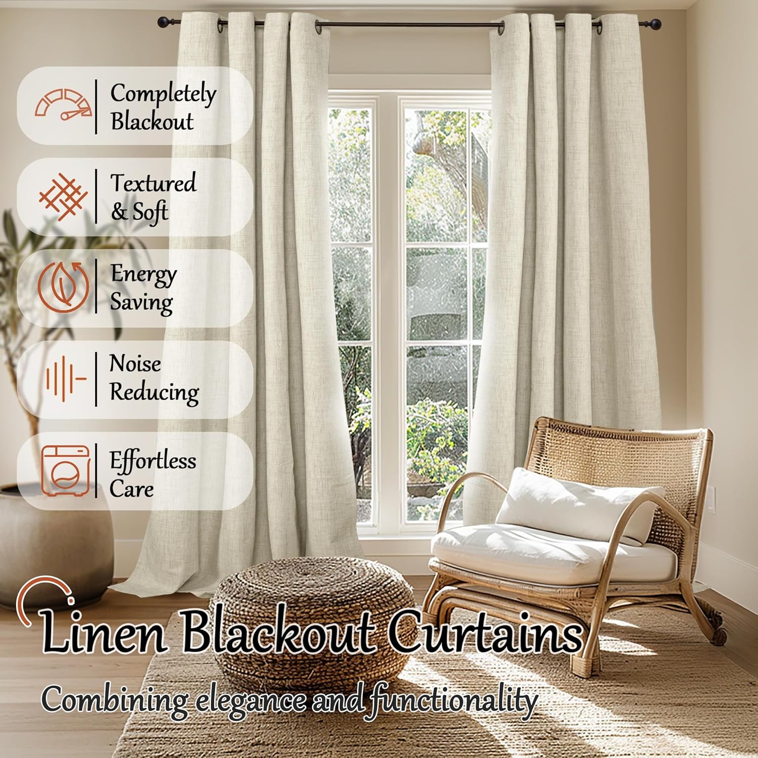 60 Inch Wide Linen Blackout Curtains for Living Room/Bedroom 84 Inch Length 2 Panels, Total Black Out Thermal Insulated Soundproof Grommet Boho Window Drapes White Liner for Modern Farmhouse, Natural