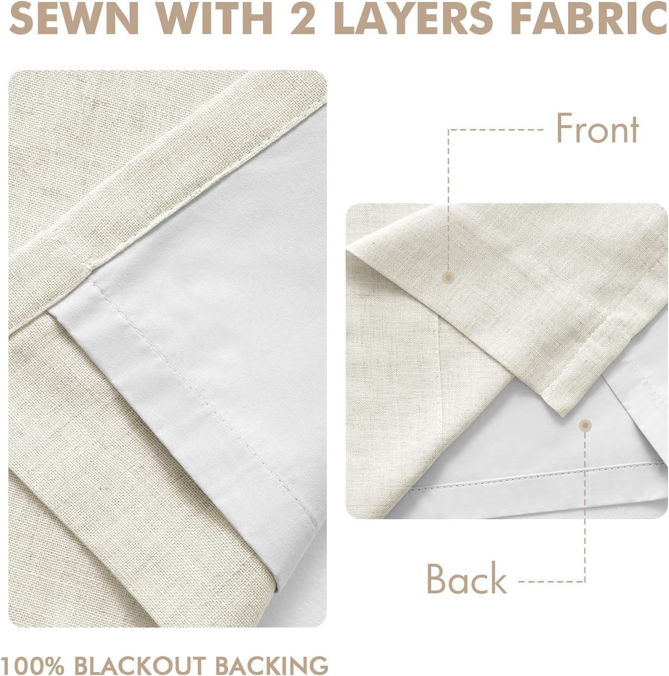 MIULEE Natural Pinch Pleated 100% Blackout Linen Curtains for Bedroom, Room Darkening Light Blocking Window Curtains 84 inches Long for Living Room, Black Out Pleat Drapes with Pin Hooks, 2 Panels
