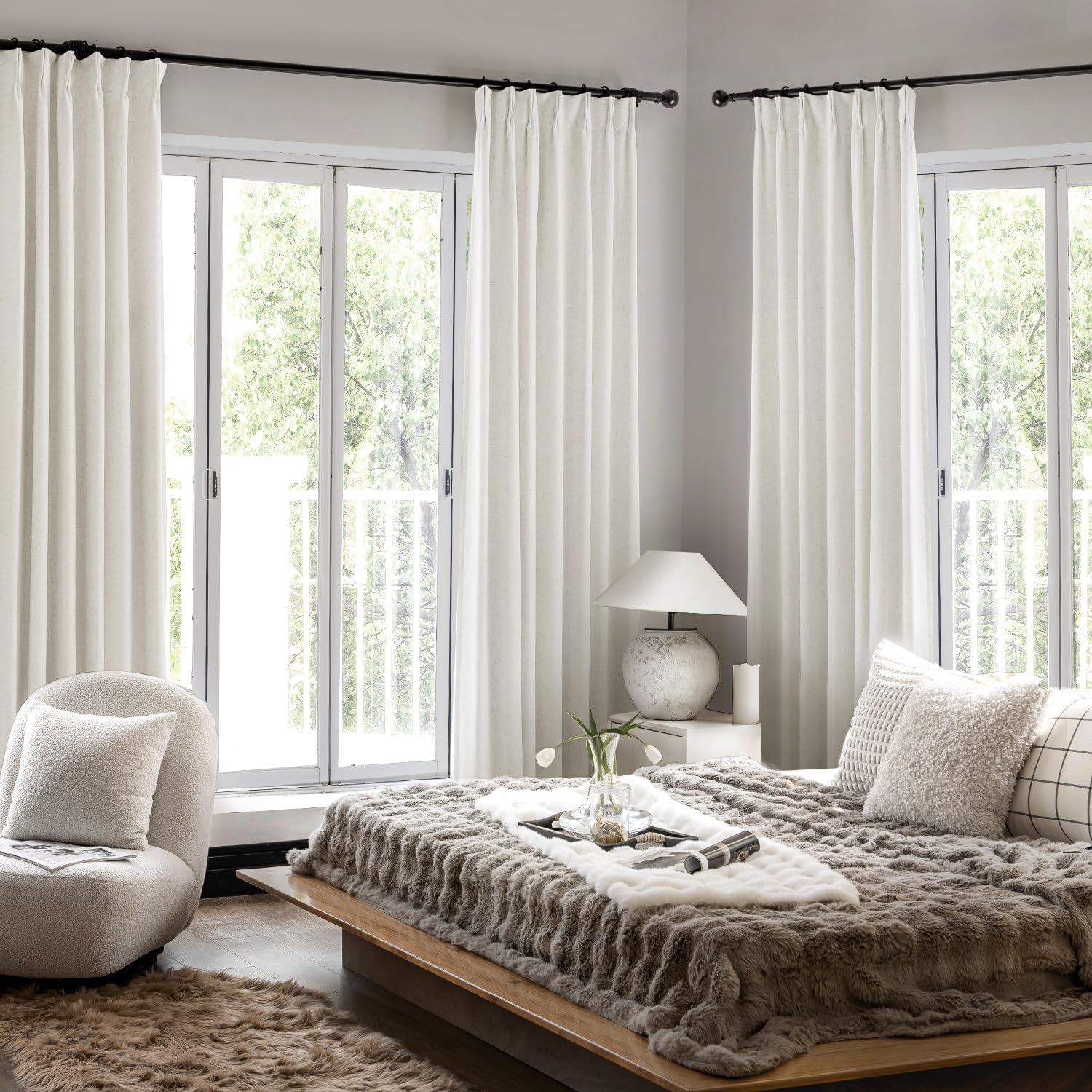 Pinch Pleated 100% Blackout Linen Curtains 95 Inches Long for Bedroom Natural Black Out Pleat Curtains for Living Dining Room Darkening Thermal Insulated Window Curtain Drapes with Pin Hooks, 2 Panels