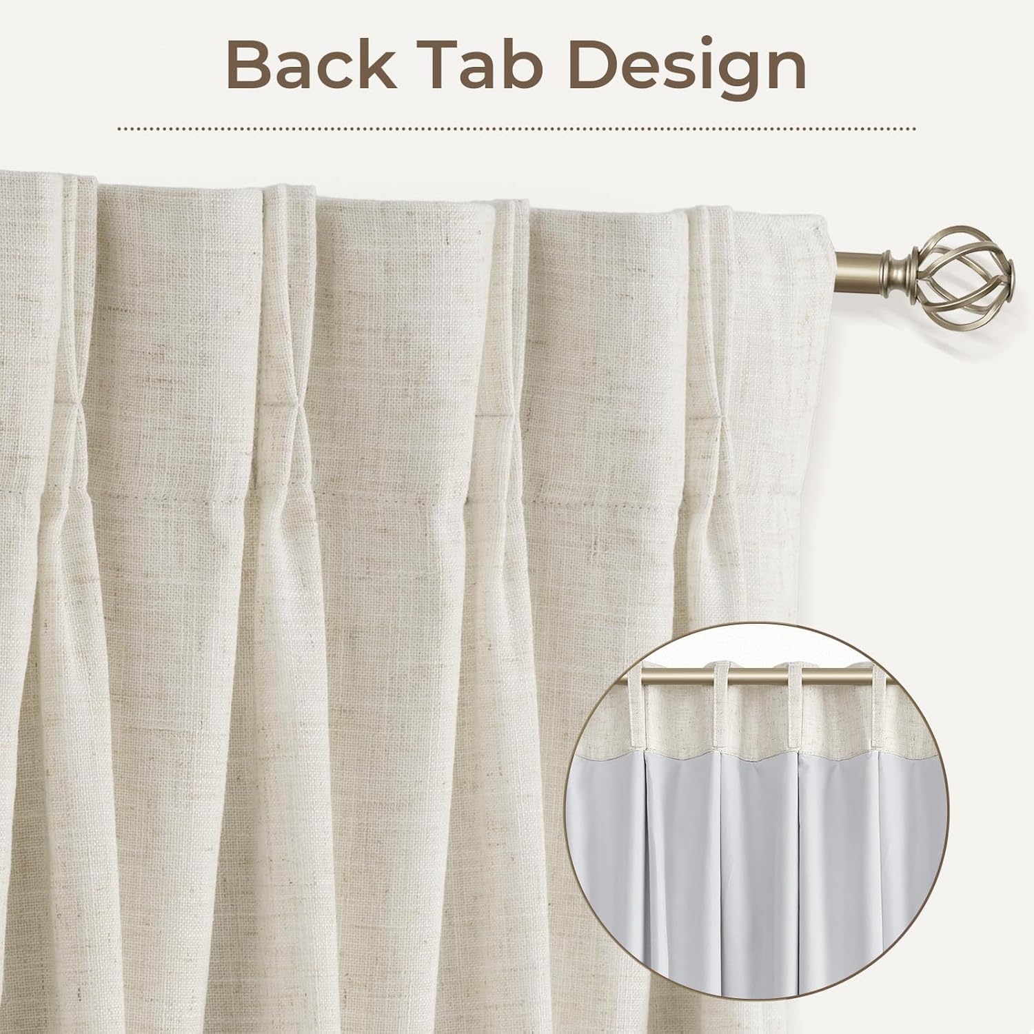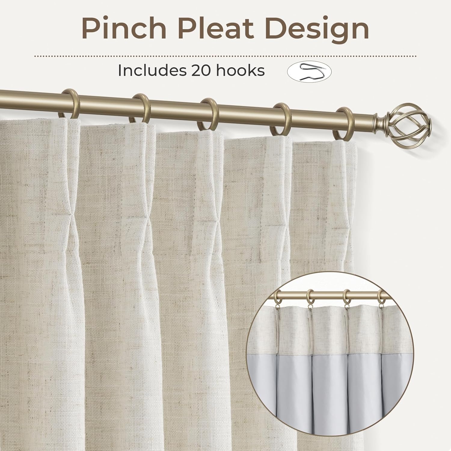 Pinch Pleated Blackout Curtains 96 Inches Long, Linen Blend, 100% Blackout Drapes with 20 Hooks, Ideal for Bedroom and Living Room, 40" W x 96" L (Pack of 2), Natural