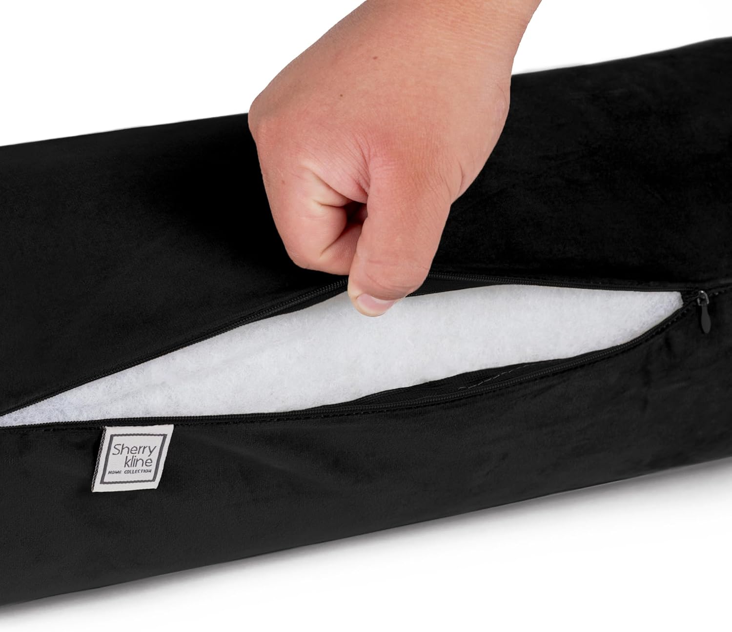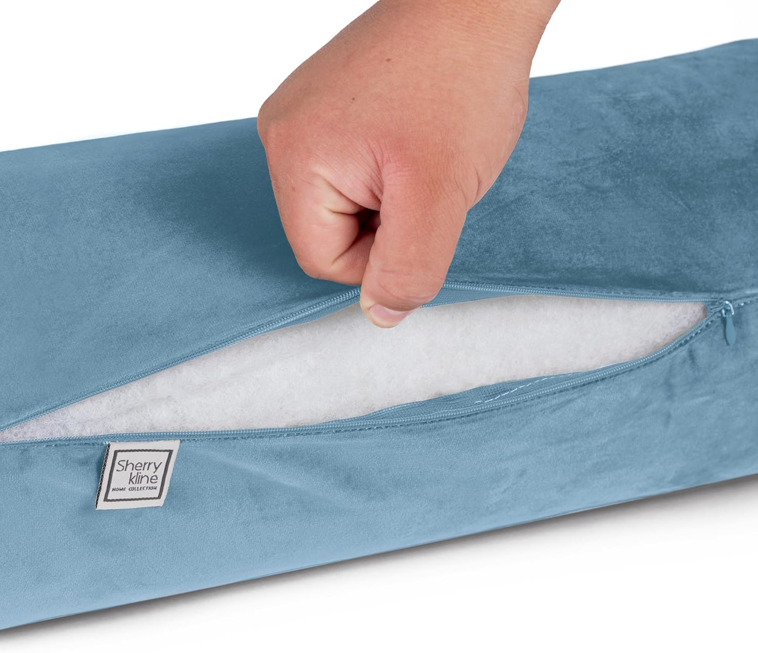 Sherry Kline Velvet Bolster Pillow, Decorative Throw Pillow, (Set of 2), (Bluestone)