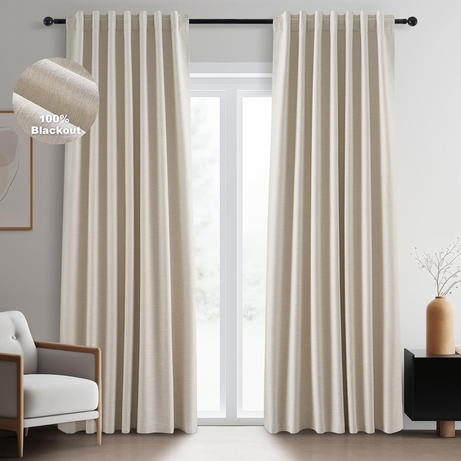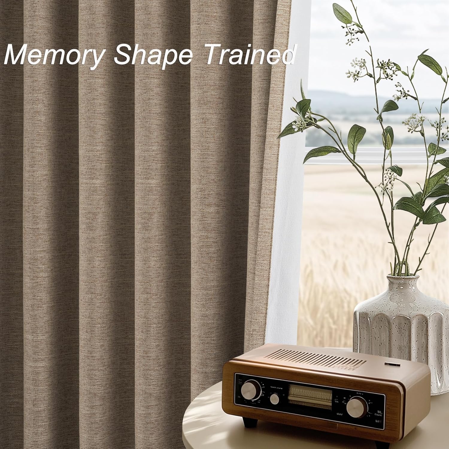 Topfinel Linen Blackout Curtains 96 Inch Long, Light Blocking Rustic Neutral Thermal Insulated Brown Natural Linen Cabin Back Tab Viral Drapery Drapes with Hooks Rings 2 Panel Sets, Brown Tan 8 FT