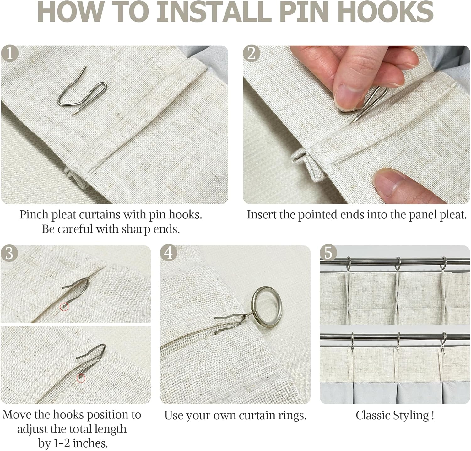 Vision Home Natural Full Blackout Curtains Linen Blended Darkening Window Curtains 84 inch for Living Room Bedroom Thermal Insulated Pinch Pleat Drapes with Hooks 2 Panel 40"Wx84"L